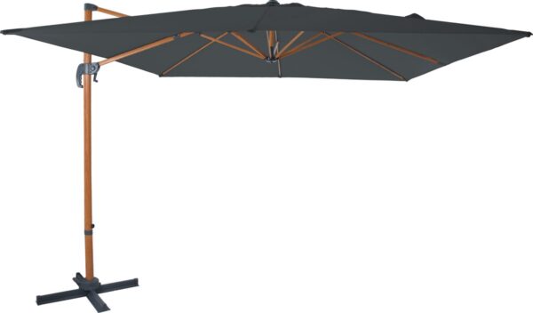 AXI Nima Zweefparasol 300×300 cm Houtlook/grijs incl. Hoes – Gepoedercoat aluminium frame met kruisvoet – 360° Draaibaar – Kantelbaar – UV werend doek (8720365063282)