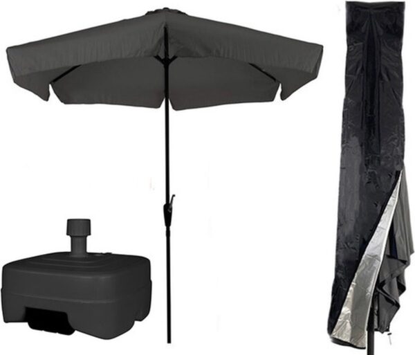 CUHOC Grijze / Antraciete Parasol – Parasolhoes – Extra Zware Vulbare Verrijdbare Parasolvoet – parasol met voet, parasol met hoes en voet, stokparasol met hoes en voet – parasol grijs hoes (8720574442823)