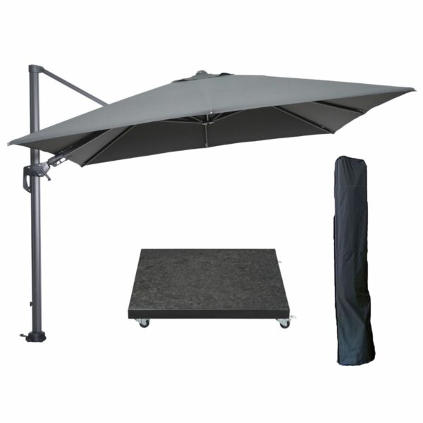 Garden Impressions Hawaii zweefparasol Ø350 cm carbon black / zwart met 90kg royal antraciet parasolvoet en parasolhoes (6097125924957)