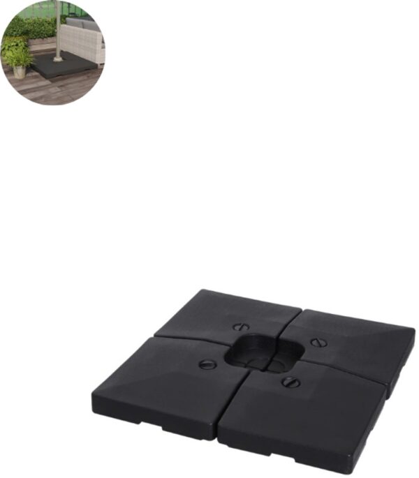 Parasoltegels – Vulbare Parasoltegels – Voor kruisvoet – 50x50cm – Inhoud 25L – 4 stuks voor zweefparasol – Zwart (8721392001216)