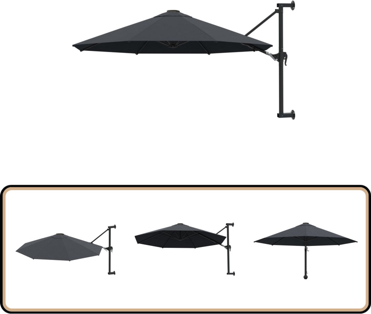 vidaXL Wandparasol Antraciet Ø300cm met Zwengelsysteem Muur...
