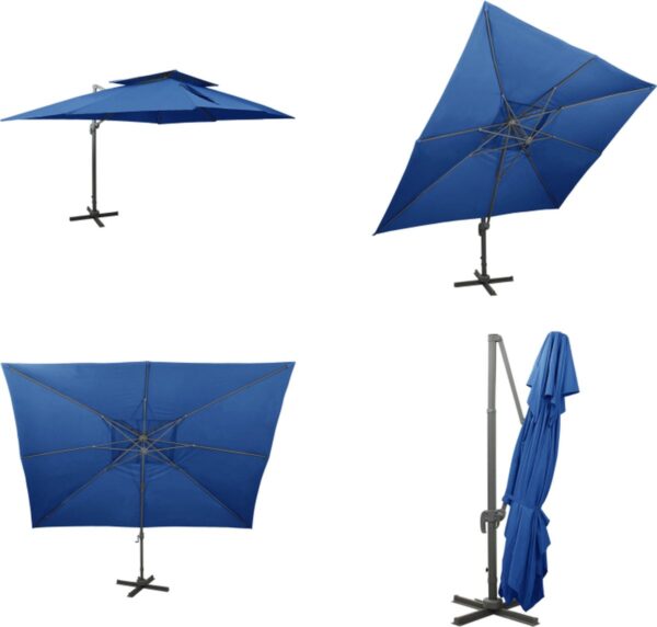 vidaXL Zweefparasol met dubbel dak 400×300 cm azuurblauw – Zweefparasol – Zweefparasols – Parasol – Tuinparasol (8721115539927)