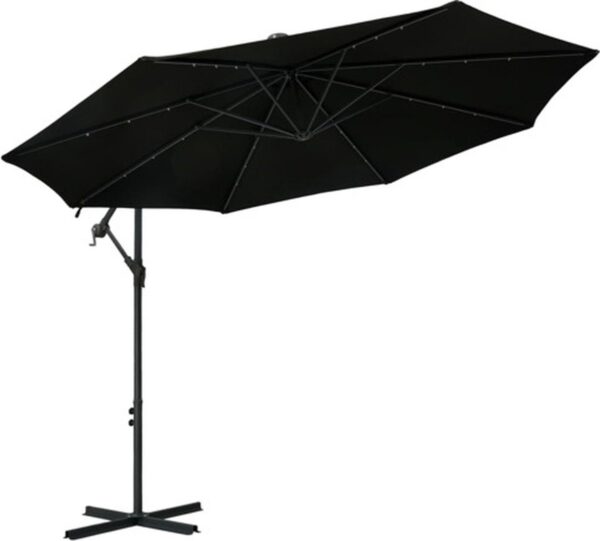 vidaXL – Zweefparasol – met – LED – en – stalen – paal – 300 – cm – zwart (8719883744636)