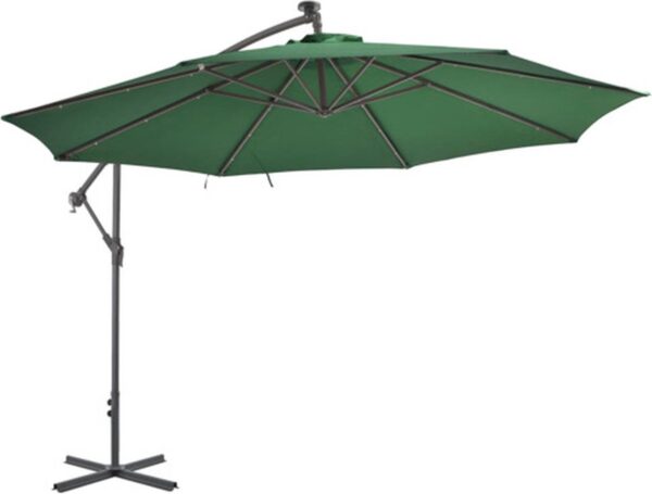 vidaXL – Zweefparasol – met – LED-verlichting – en – metalen – paal – 350 – cm – groen (8718475697633)