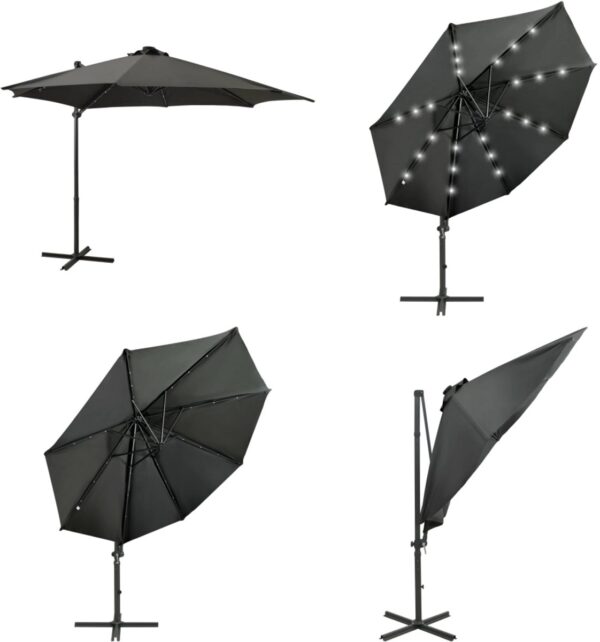 vidaXL Zweefparasol met paal en LED-verlichting 300 cm antracietkleur – Zweefparasol – Zweefparasols – Parasol – Tuinparasol (8224402044697)