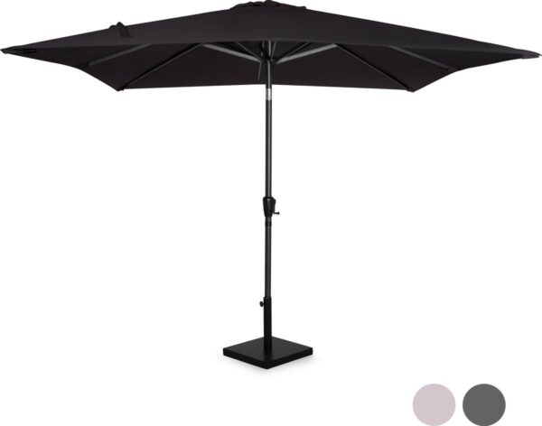 Complete set! Deze parasol wordt als complete set geleverd, inclusief VONROC Parasolvoet Vierkant 26kg. (GP509XX). Het genieten kan direct beginnen! De zachte verkoeling van VONROC Parasols Dé ingrediënten voor een perfecte dag: zomerse temperaturen, een verkoelend drankje, een goed boek, een gezellige barbecue met vrienden of familie... én het zachte, gefilterde zonlicht van jouw VONROC parasol! Premium stokparasol Rosolina De premium stokparasol Rosolina van VONROC heeft een groot doek van maar liefst 280x280cm, en biedt daarmee een flinke schaduw! Opzetten en invouwen is eenvoudig dankzij een handig opdraaimechanisme. Daarnaast is de parasol kantelbaar, zodat je kunt meebewegen met de stand van de zon. Zo heb je altijd schaduw zónder de parasol te hoeven verplaatsen. De parasol Rosolina is onderdeel van VONROC Premium lijn. Dat betekent dat de parasol is vervaardigd uit hoogwaardige onderdelen, waaronder een extra dik doek van polyester. Het doek is eenvoudig te reinigen en heeft (ten opzichte van andere merken) een zeer hoge UPF-waarde. Dit staat voor Ultraviolet Protection Factor, ofwel bescherming tegen schadelijke Uv-straling. Met onze hoge UPF-waarde van 50+ ben je dus goed beschermd! Er wordt standaard een beschermhoes meegeleverd. Deze is voorzien van een rits en een handige (carbon fiber) hulpstok, waarmee omdoen en afhalen erg gemakkelijk gaat. Zo garandeert VONROC een lange levensduur en vele jaren plezier! De voordelen van de stokparasol Rosolina Set op een rijtje Complete set, inclusief vierkante parasolvoet 26 kg. (GP509XX) Eenvoudige bediening dankzij het handige opdraaimechanisme. Hoogwaardig doek met een UPF-waarde van 50+ voor ultieme bescherming tegen schadelijke Uv-straling. Kantelbaar: beweeg mee met de zon. Eenvoudig te reinigen. Wordt geleverd met een duurzame beschermhoes voor een lange levensduur. Wat zit er in de milieuvriendelijke verpakking? De VONROC Premium Parasol Rosolina Set zwart (GP502XX_C) wordt geleverd in een milieuvriendelijke doos zonder fullcolour opdruk. Inhoud: 1 x Parasol Rosolina - 280x280cm - zwart (GP502XX) 1 x Parasolvoet Vierkant 26kg (GP509XX) 1 x Parasol beschermhoes (EAN: 8717479100859)
