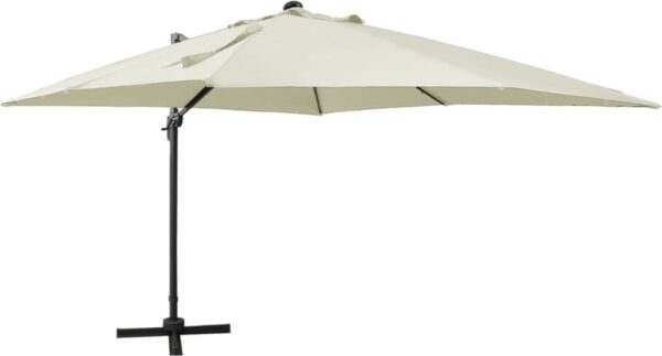 Zandkleurige zweefparasol met LED – 300 cm Tuinparasol – Parasol – Zonnewering – Buitensfeer – Led Lampjes (8103329249524)