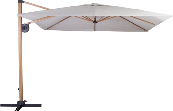 Zweefparasol Luxe Teak Hout motief Aluminium 3x3m doek wit/grijs knikbaar & 360° draaibaar + kruispoot (4057984010798)